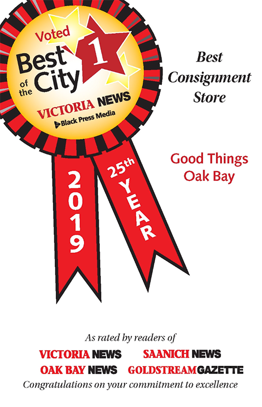 Good Things was started in 1994. At that time we had an antique store called The Old Vogue Shop. People brought their antiques and collectibles to us but they wanted us to have a place for their newer "Good Things" to sell for them. There were auction houses and secondhand stores available but no place that consistently sold only good quality items that were beautifully merchandised. In essence, that is how we came to create "Good Things." All we had to do was celebrate and display the great pieces our customers brought us. For some years we advertised but as we became very busy we simply relied on word of mouth. Sometimes we call the shop "Victoria's best kept secret." People constantly come in for the 1st time and ask when we opened and we say, over 20 years ago. We started small and expanded several times as space became available. Now we say we have been "finding new homes for 'good things' since 1994."
